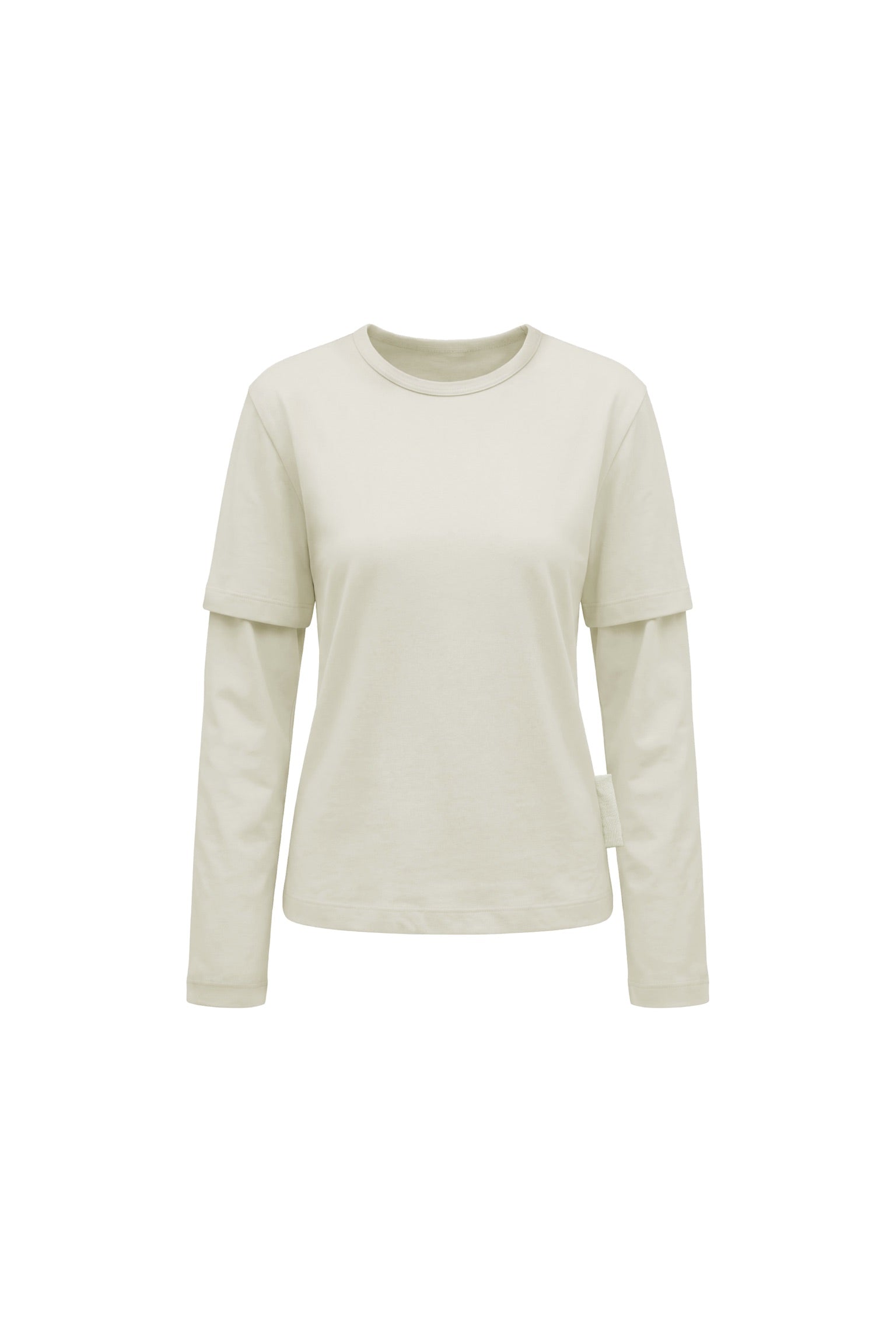 A beige short-sleeve tee seamlessly layered over a matching long-sleeve base — all in one effortless piece. Crafted from durable yet ultra-soft heavyweight cotton, this re-engineered essential delivers the perfect balance of structure and comfort for the real demands of your day.